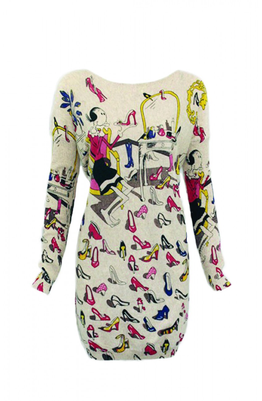 Features: | Loose fitting style Long sleeves Lovely cartoon print 'olive & shoes' |
