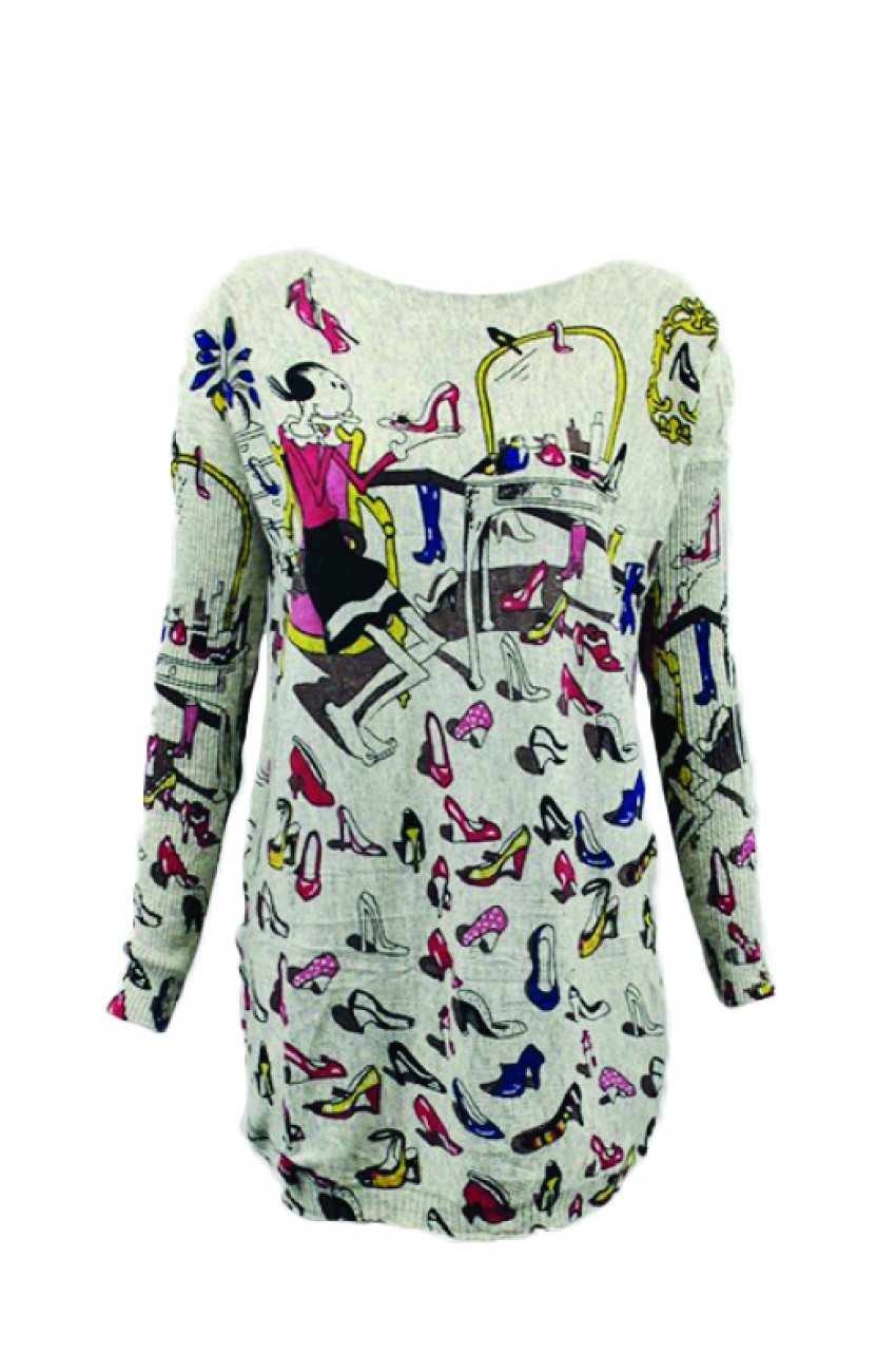 Features: | Loose fitting style Long sleeves Lovely olive and shoes print |