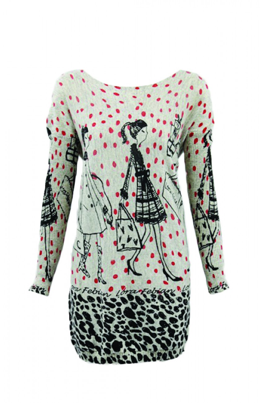 Features: | Long Sleeves V Neck line Shopping girl red dot pattern Knit and button-through front |