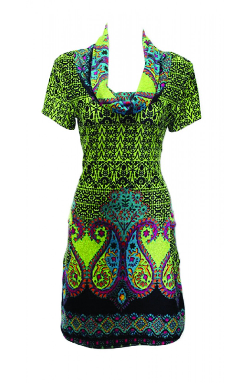 Features: | Short Sleeve Cowl Neckline Button detailing on both side waist line Bubble fitting style & panel hem line |